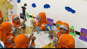 Hari Rabu itu, sejak pagi suasana kelas Small Alumna terasa beda. Meja-meja dihiasi peralatan craft serba warna : gelas kertas, kertas origami warna-warni, sedotan, cotton bud, lem dan gunting yang aman untuk anak-anak. Miss guru pun mengumumkan bahwa hari ini akan ada kegiatan spesial: Art and Craft dengan tema ‘Udara’, dan proyeknya adalah membuat kincir angin!